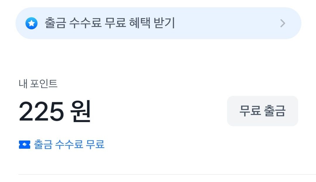토스뱅크 들어가서 내 포인트 > 출금 수수료 무료 또는 무료 출금이 보이면 버튼 클릭하세요!