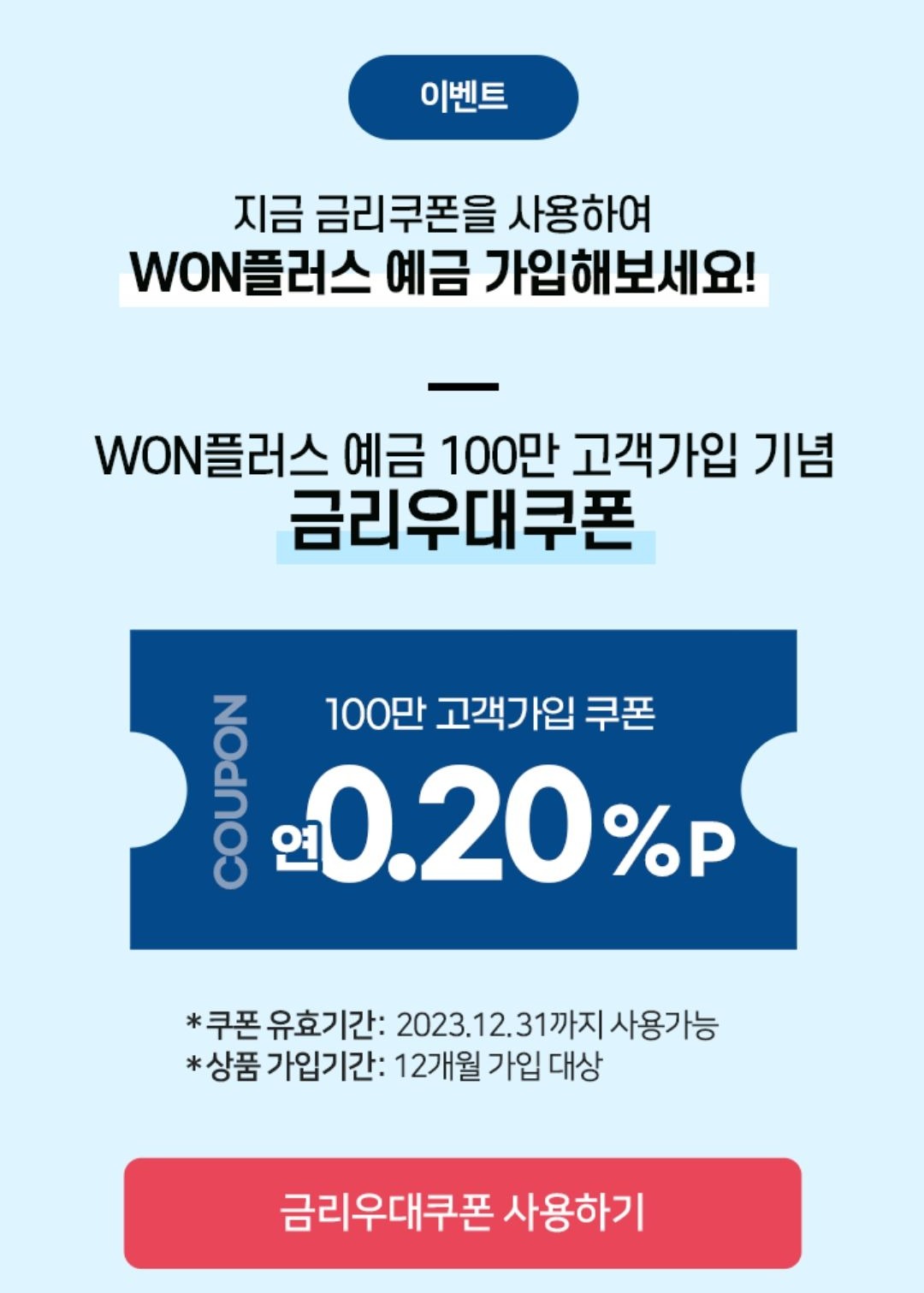 쿠폰 우대금리는 쿠폰 발급 후 WON플러스 예금 가입완료 시 적용