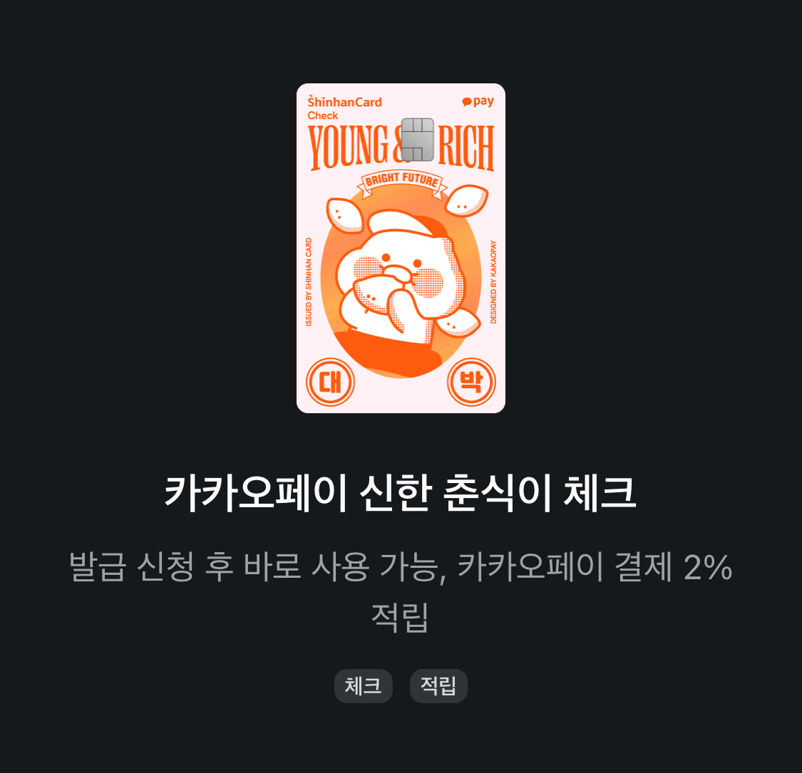 신한 라이언 카카오페이 체크카드 상품은 위 링크에서 확인 가능합니다.