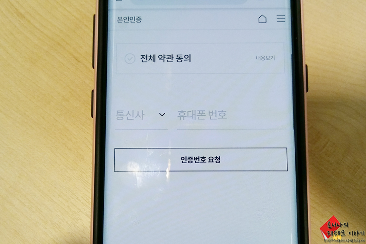 그리고 핸드폰 번호로 인증번호 받습니다.