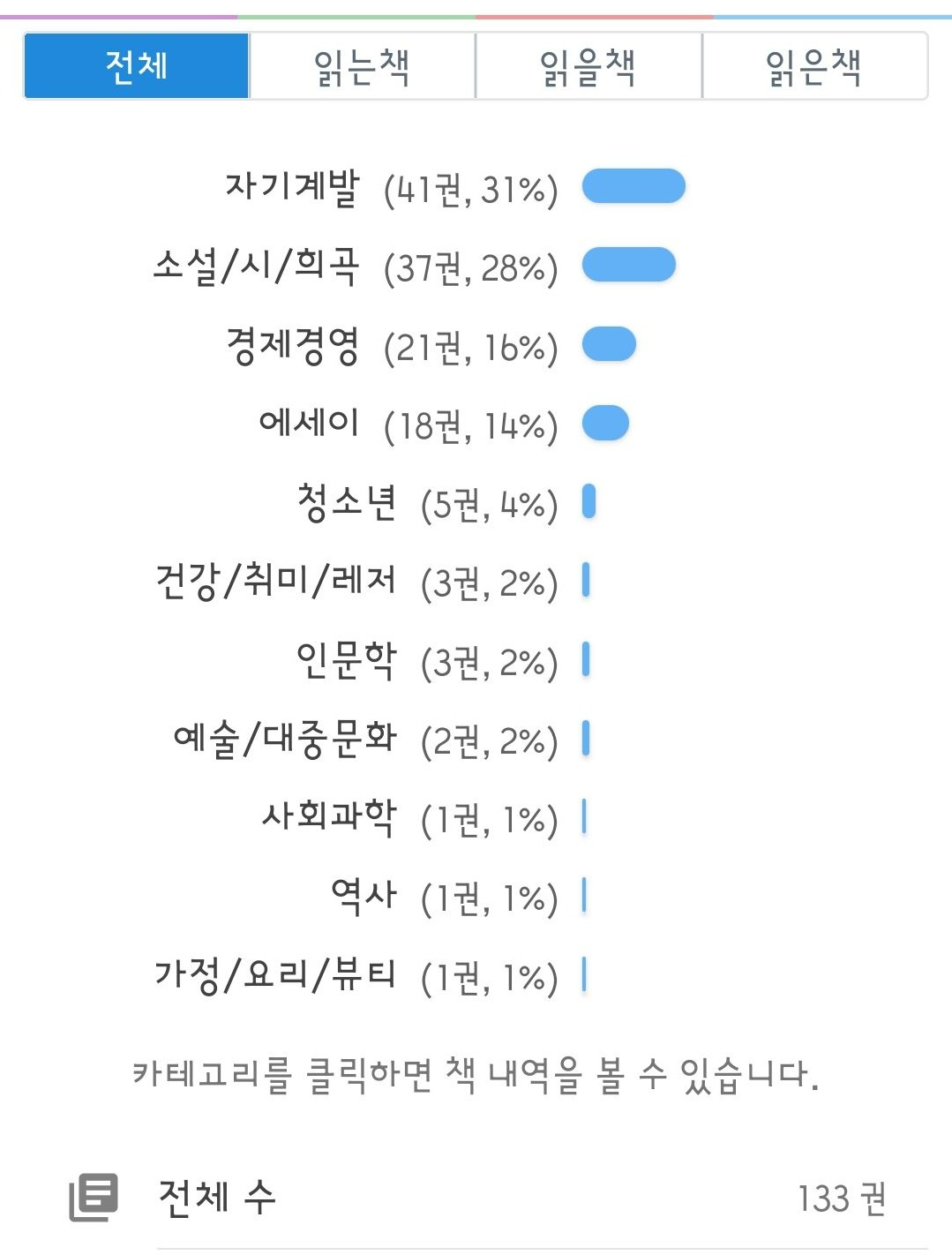 읽었던 133권에 대한 분야도 확인할 수 있습니다.