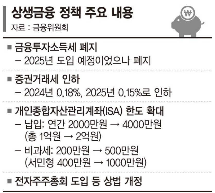 1) 25년에 도입 예정이었던 금융투자소득세 폐지 추진