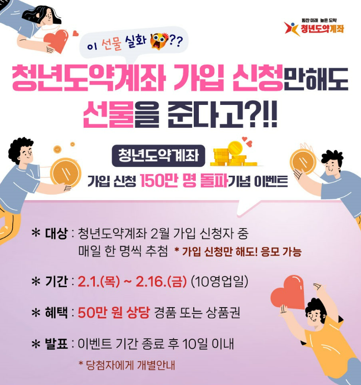 청년도약계좌 가입 신청만 해도 응모 가능하다고 합니다. 하루 1명이라고 하는데.. 일단 도전!!