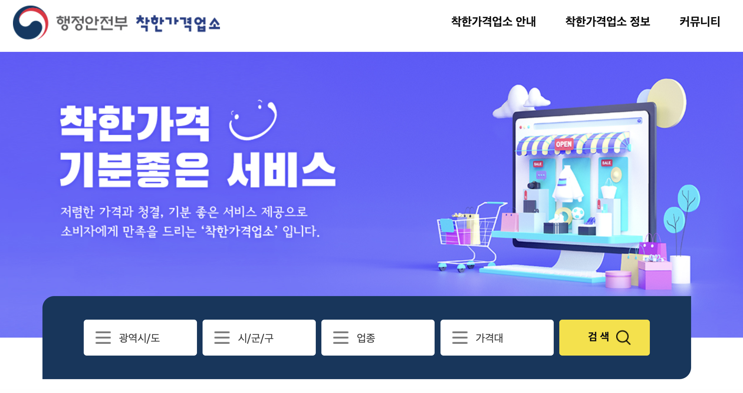 행정안전부 착한가격업소 홈페이지 하단 링크 누르면 전국에서 현재 선정된 업체들을 확인할 수 있습니다.