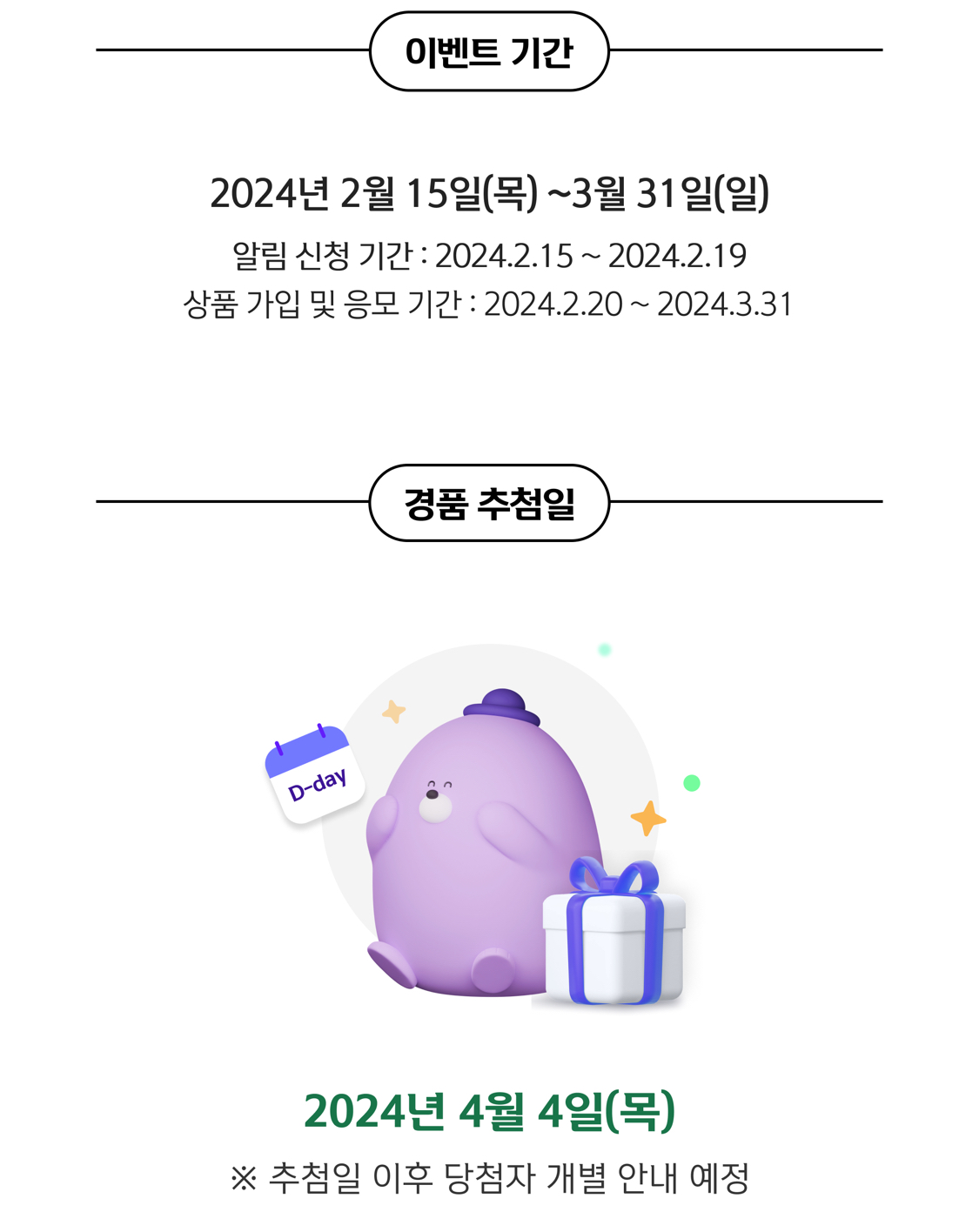 경품 추첨일은 4월 4일 목요일입니다. 상품 가입해야 선물 받을 수 있는 것이라면 발표나고 해지해도 됩니다.