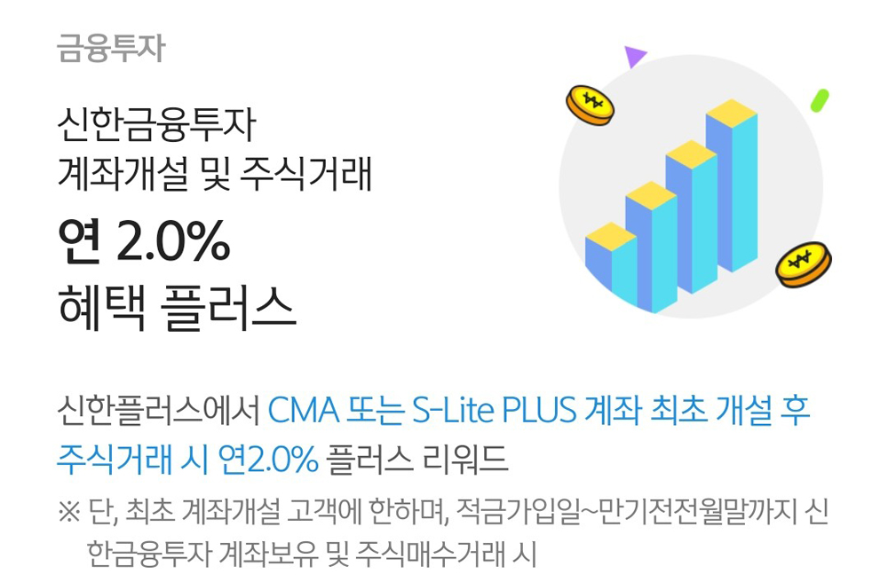 신한금융투자 계좌계설 및 주식 거래 연 2.0% 혜택 플러스
