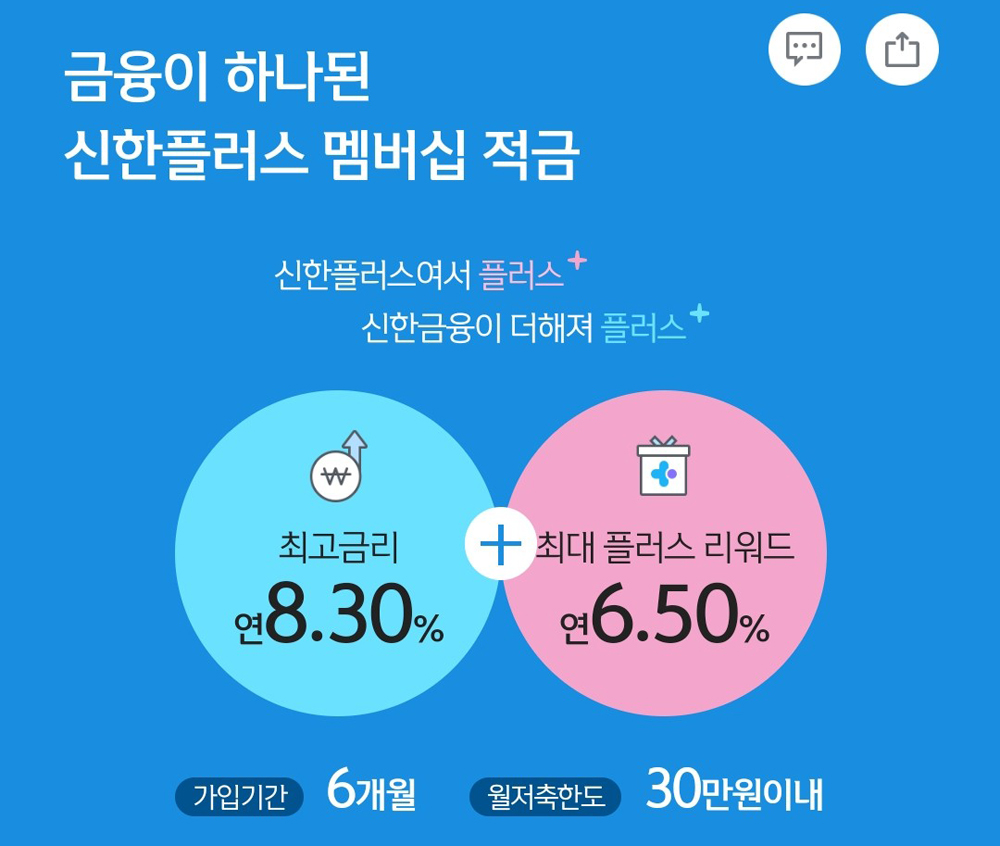 안녕하세요. 신한플러스 멤버십에서 최고금리 연 8.3% 그리고 최대 플러스 리워드 연 6.5% 받을 수 있는 뭔가 매력적인 상품이 나왔습니다. (물론 자세히 뜯어보면 어떨지 알 수 있겠죠?)