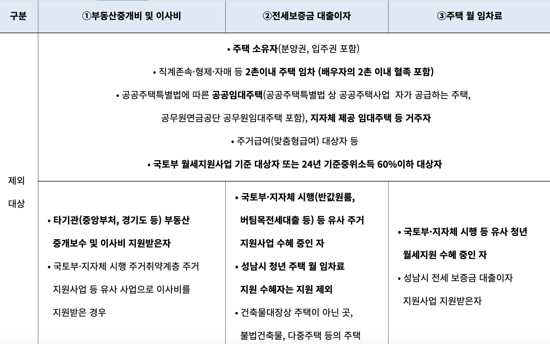 3) 주택 월 임차료 지원