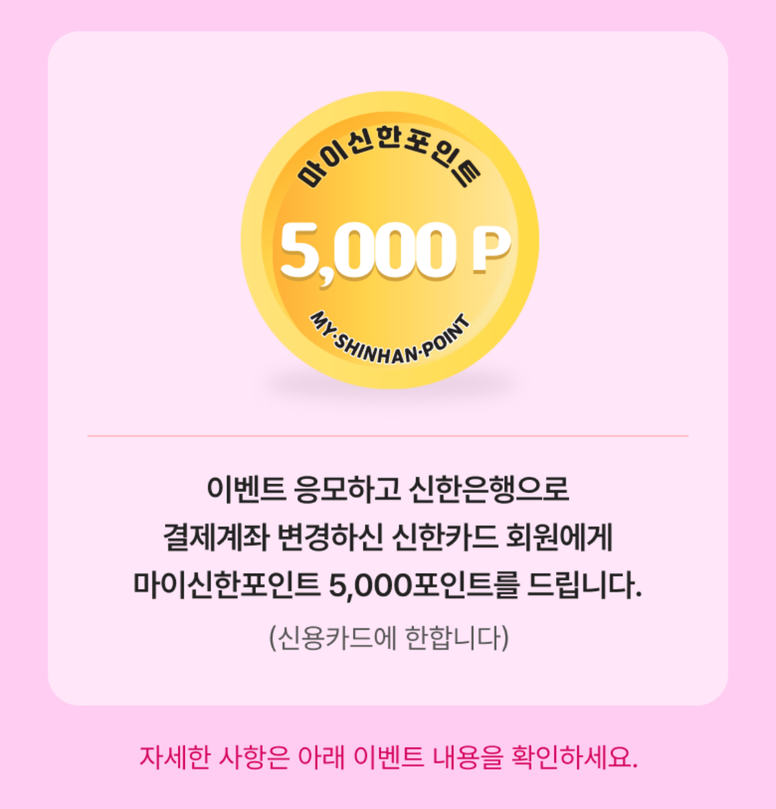 혜택 : 마이신한포인트 5,000점 (포인트 지급 예정일 : 5월 10일 금요일)