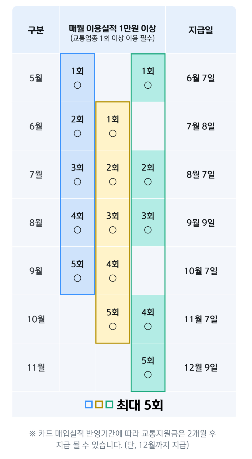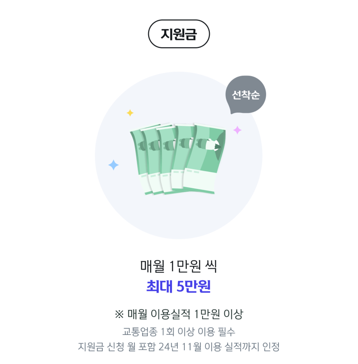 지원금 : 매월 1만 원씩 (최대 5만 원)