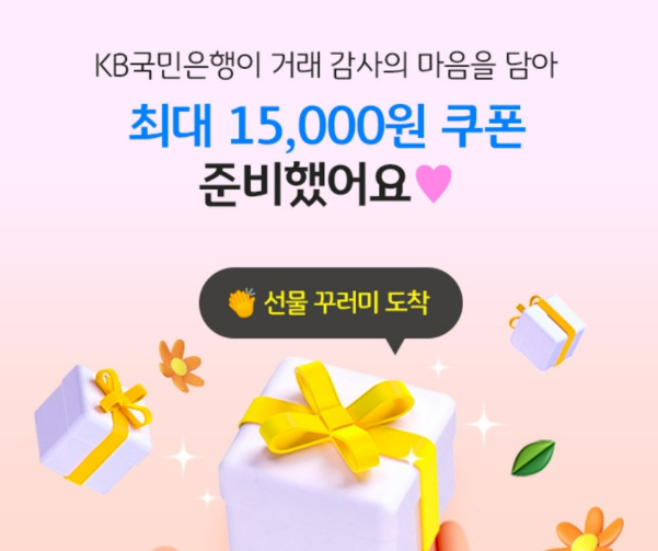 KB국민은행이 금융상품 쿠폰 이벤트를 진행합니다. 최대 15,000원 쿠폰이라 활용할 수 있다면 적극적으로 해보는 것도 좋습니다.