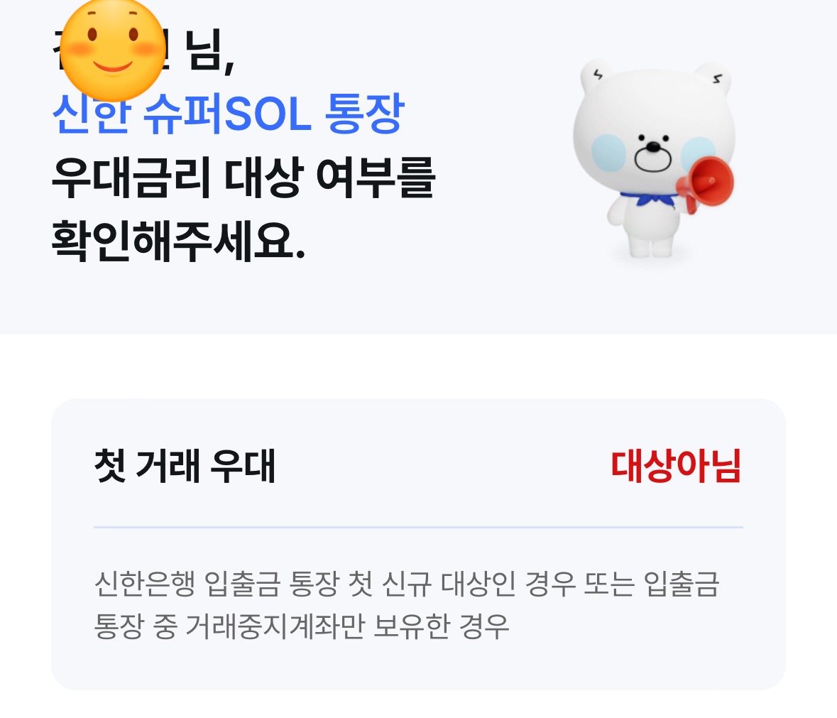 가입할 때 첫 거래 우대인지 아닌지 바로 확인 가능합니다.