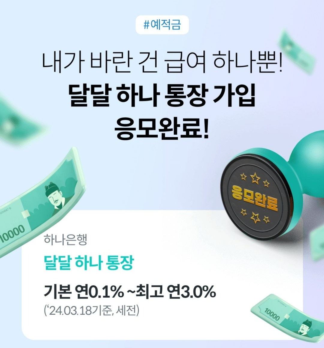 하나은행 급여통장으로 달달 하나 통장 사용하면 최고 연 3% 금리 받을 수 있습니다.