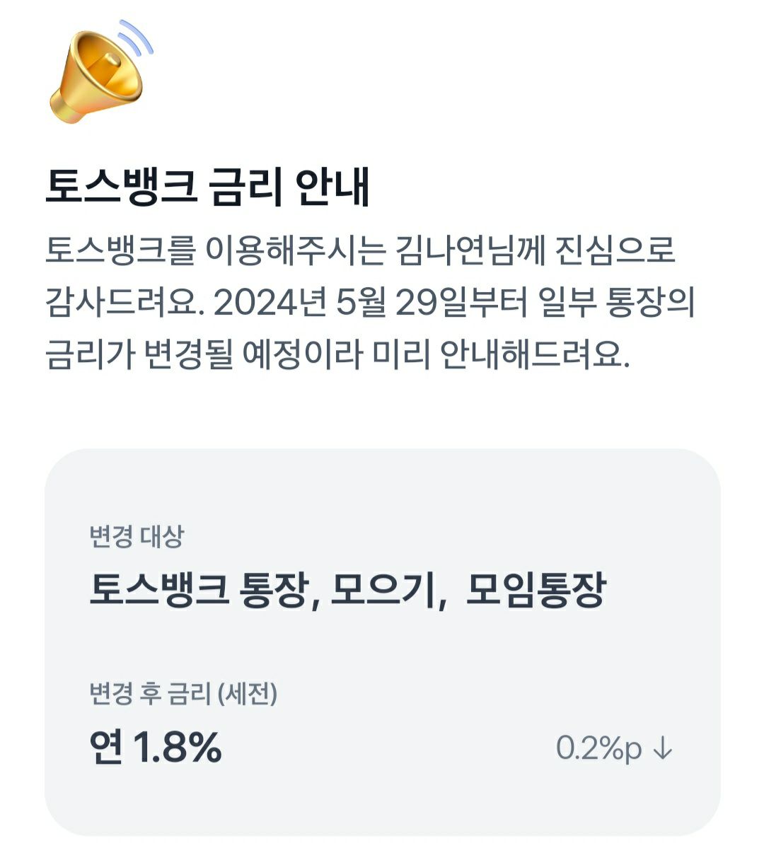 변경대상 : 토스뱅크 통장, 토스모으기, 토스모임통장, 토스커플통장