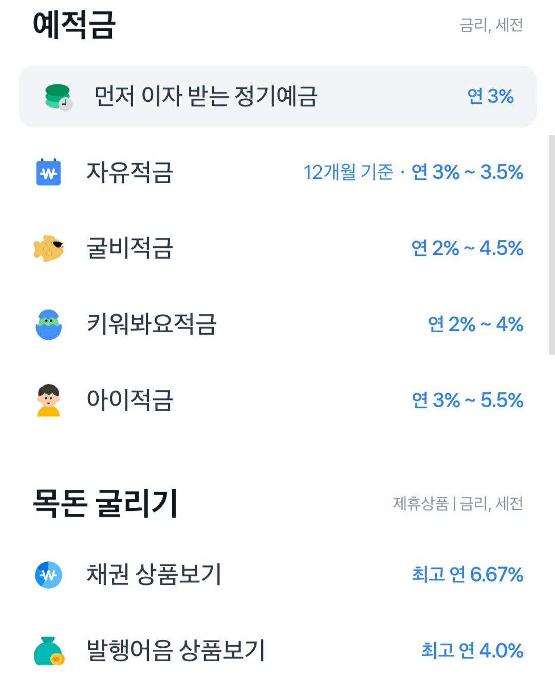 토스에 자잘한 종류 통장들이 꽤 많네요.