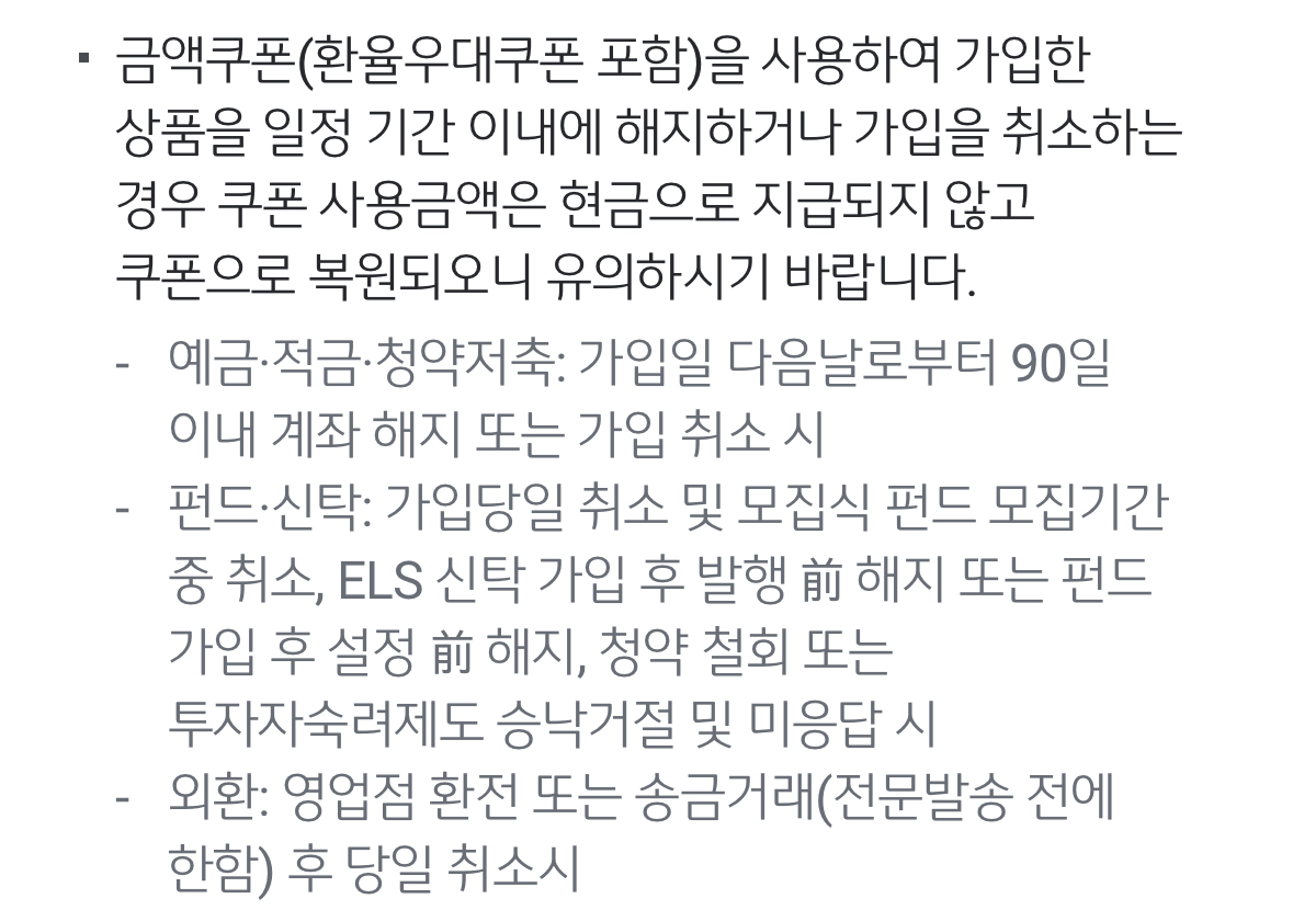 금융쿠폰 유의사항에 예금, 적금, 청약저축은 가입일 다음날로부터 90일 이내 계좌 해지 또는 가입 취소 시 현금으로 지급되지 않고 쿠폰으로 복원된다고 하는데요. 근데, 적금 가입할 때 최소 6개월 이상 가입해야만 사용할 수 있는 아이러니가 있습니다. 딱 91일로 설정하고 해지하려고 했더니.. 나원참!! 역시 호락호락하지 않습니다.