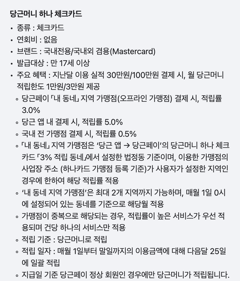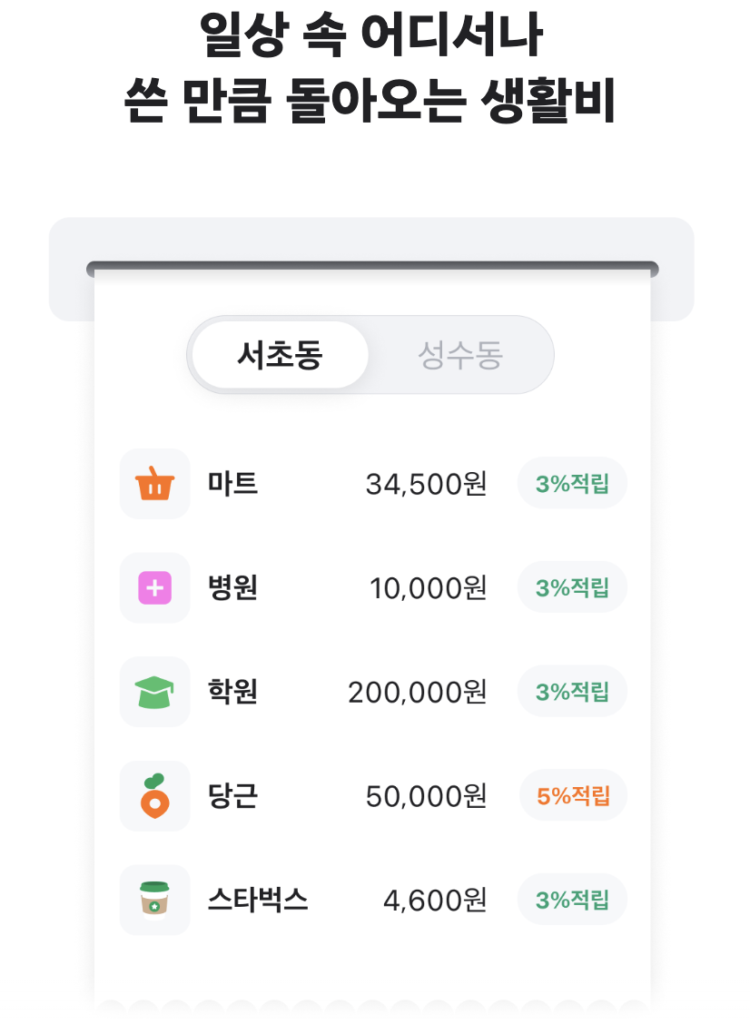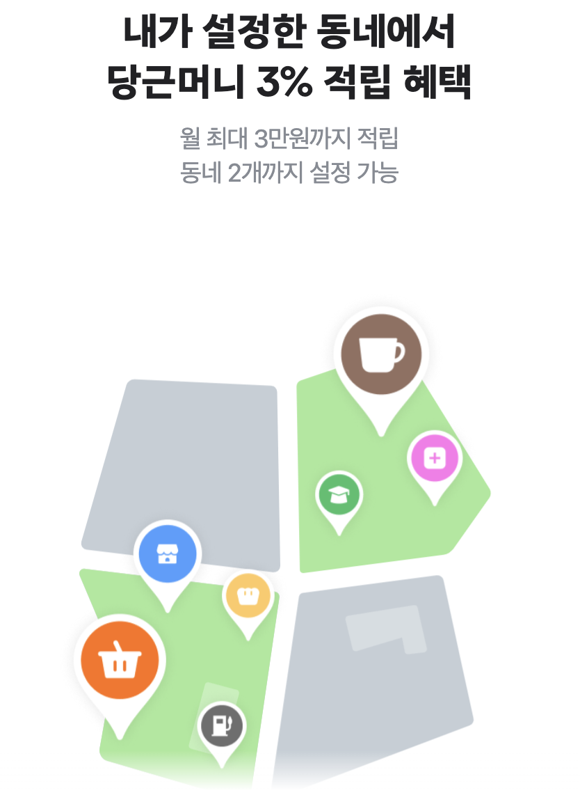 * 내 동네 지역 가맹점은 '당근 앱 > 당근페이' 당근머니 하나 체크카드 3% 적립 동네에서 설정한 법정동 기준, 이용한 가맹점 사업장 주소(하나카드 가맹점 등록 기준)가 사용자가 설정한 지역인 경우 한하여 해당 적립률 적용