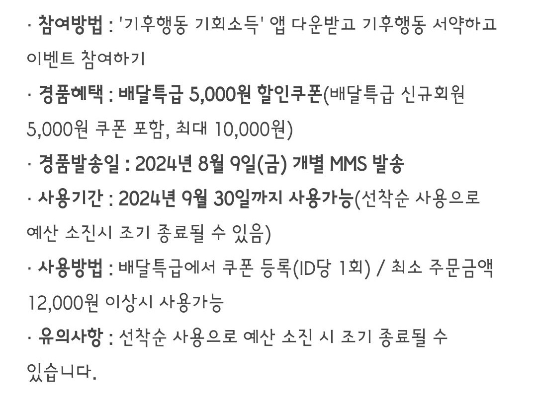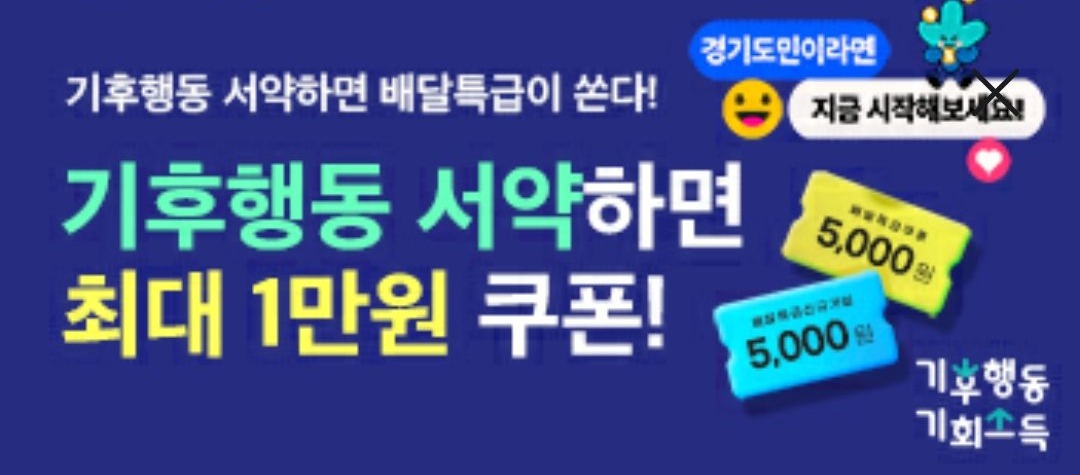 경기도 기후행동 기회소득 앱에서 기후행동 서약하면 배달특급 5,000원 할인 쿠폰 받을 수 있습니다.