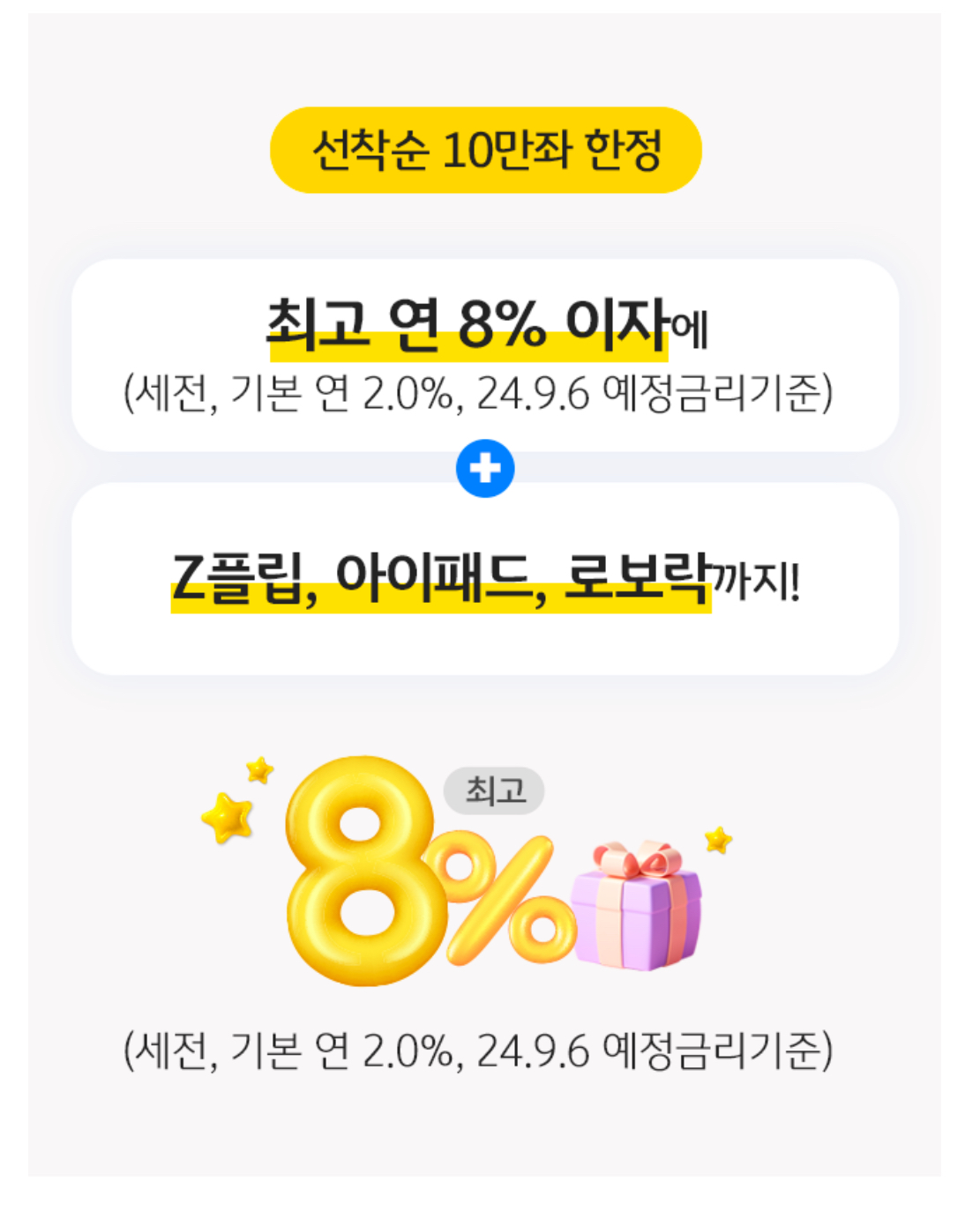 최고 연 8% 이자 (세전, 기본 연 2%)