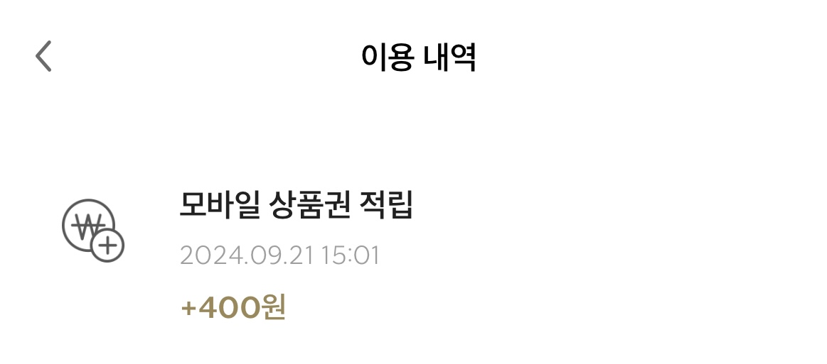 모바일 상품권 적립 400원 확인 완료입니다. 예전에 구매한 것보다 기프티콘이 비쌀 경우 그 금액을 맞추거나 넘겨야 하는 불편함이 있었는데 이제 스타벅스 카드만 있으면 차액 적립해주니까 오히려 더 좋은 듯합니다.