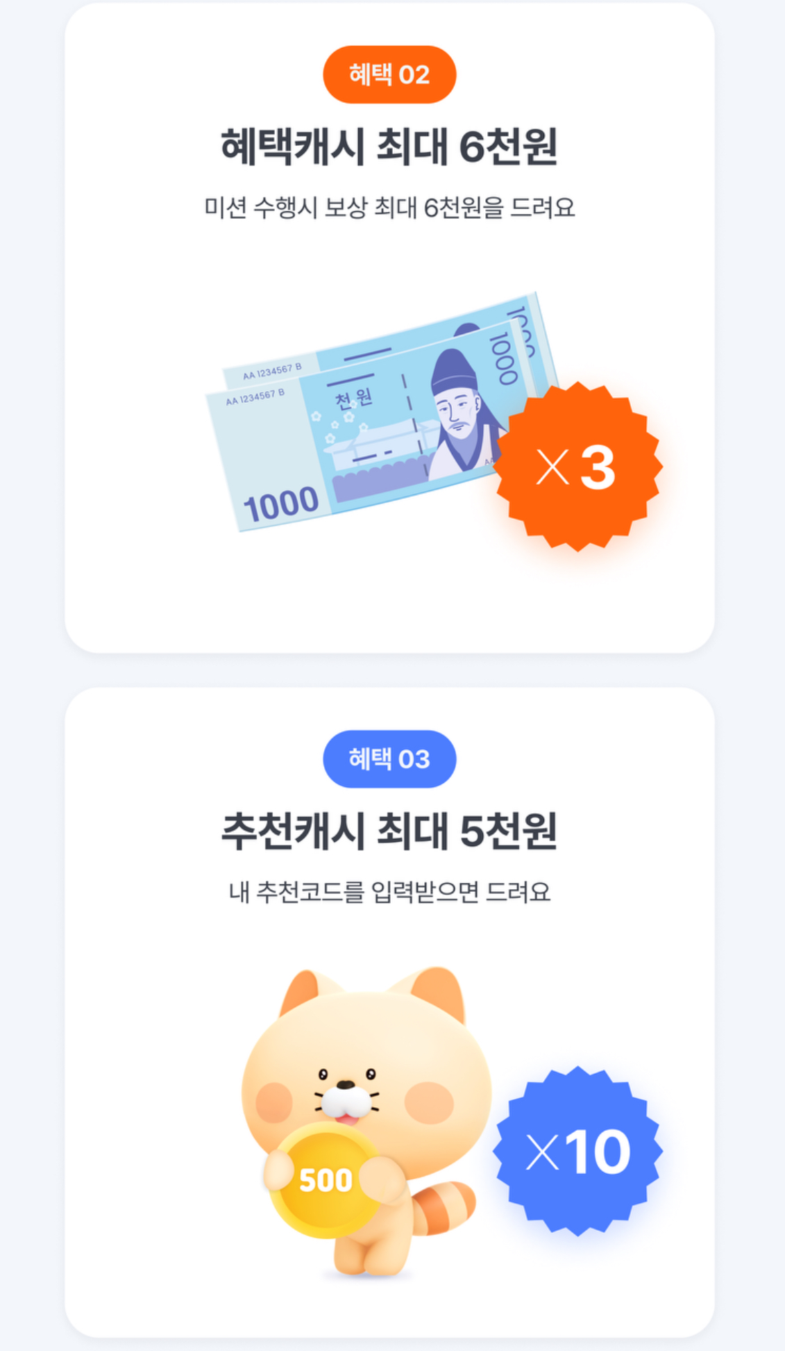 추천 캐시는 최대 5천 원까지! 500원씩 받을 수 있습니다.