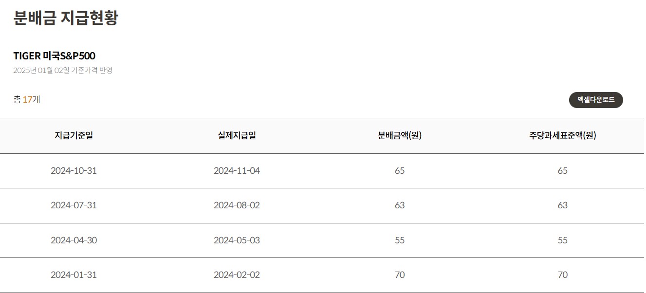 타이거 미국 S&P500 분배금은 분기마다 지급하면서 1년에 4번 받을 수 있습니다.