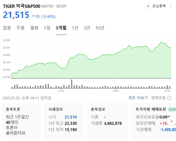 Tiger 미국 s&p500 ETF는 미국 시장 대표 지수에 투자하는 상품입니다.