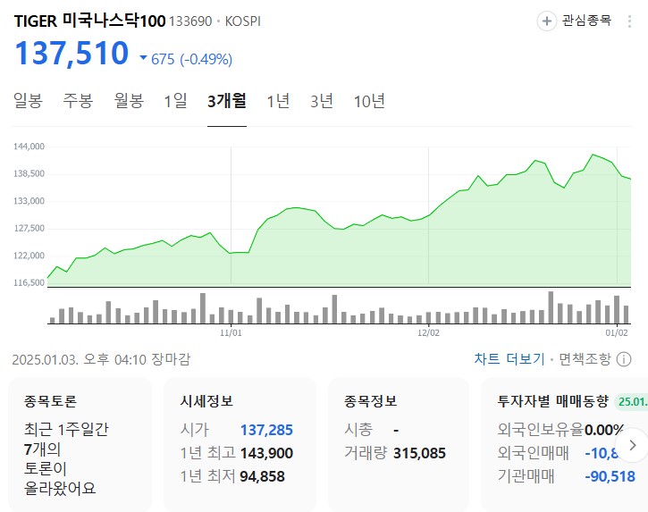 Tiger 미국 나스닥 100 ETF 구성 종목 TOP10 (25.01.04)