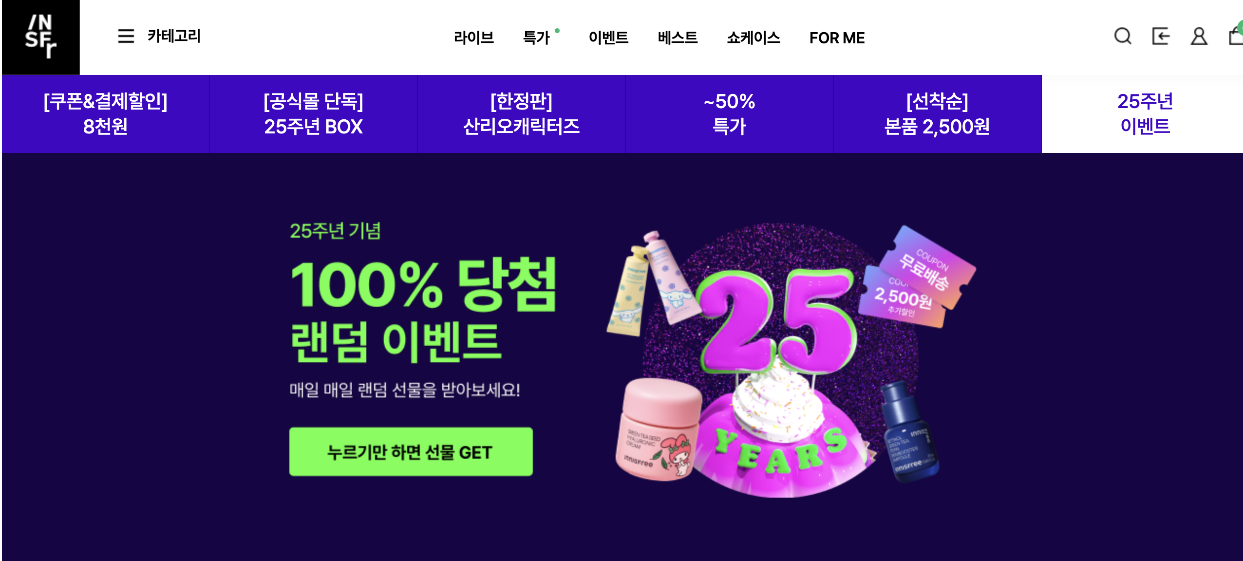 100% 당첨 - 이니스프리 | INNISFREE