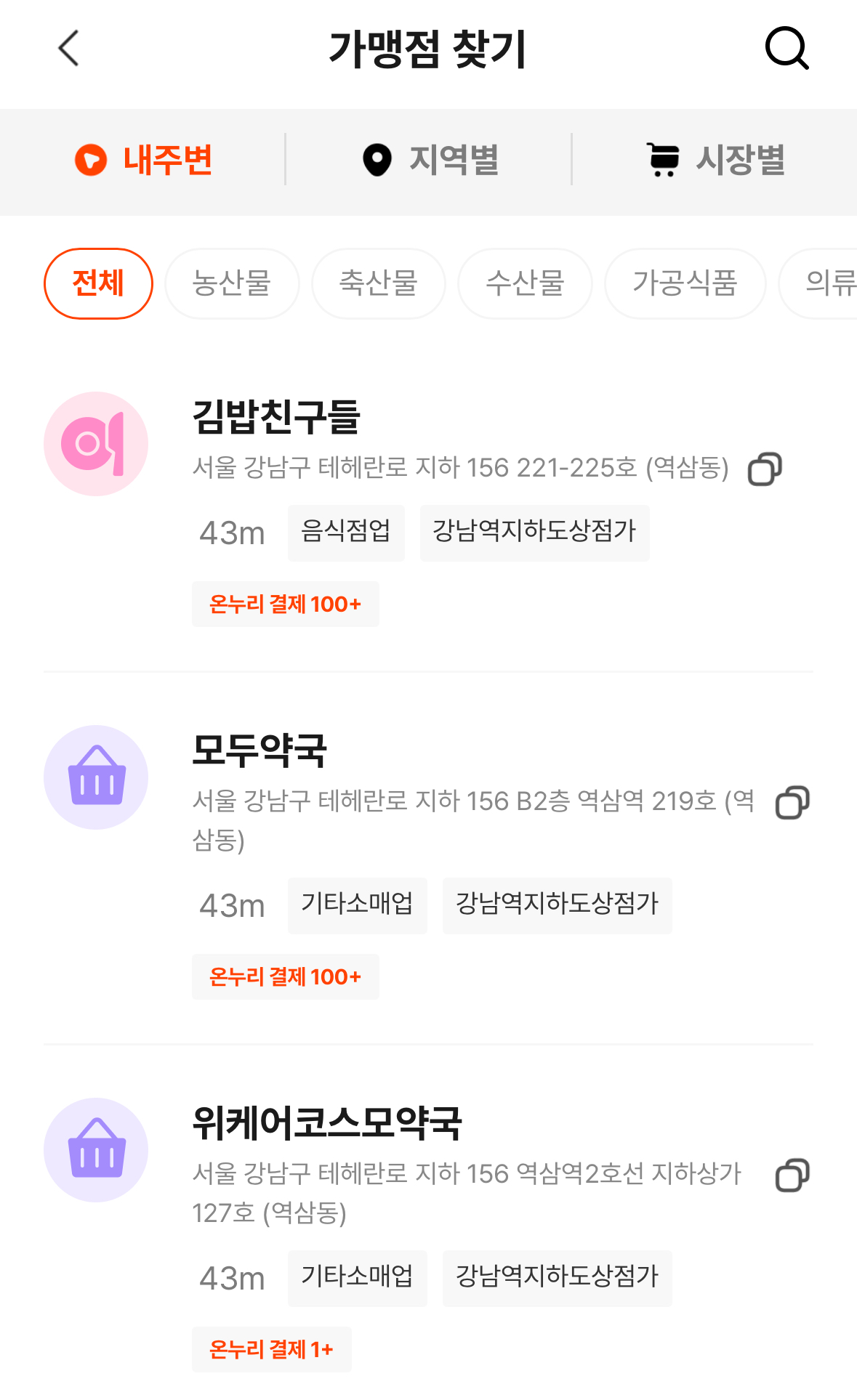 온누리 상품권 앱에서 내 위치나 지역 찾기를 통해 온누리 상품권 가능한 곳 찾아볼 수 있어요.