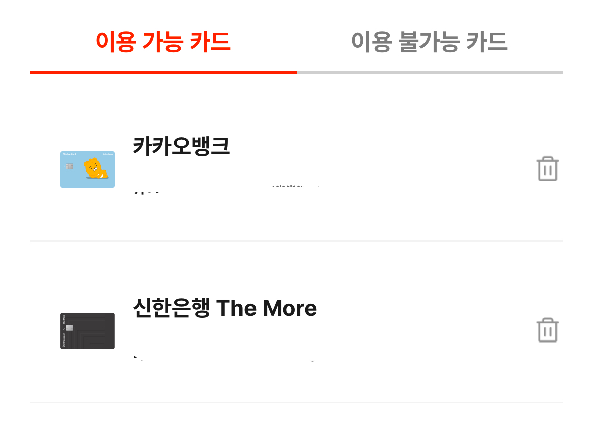 평소 페이 종류나 실물카드 사용하는 카드를 등록하면 됩니다.