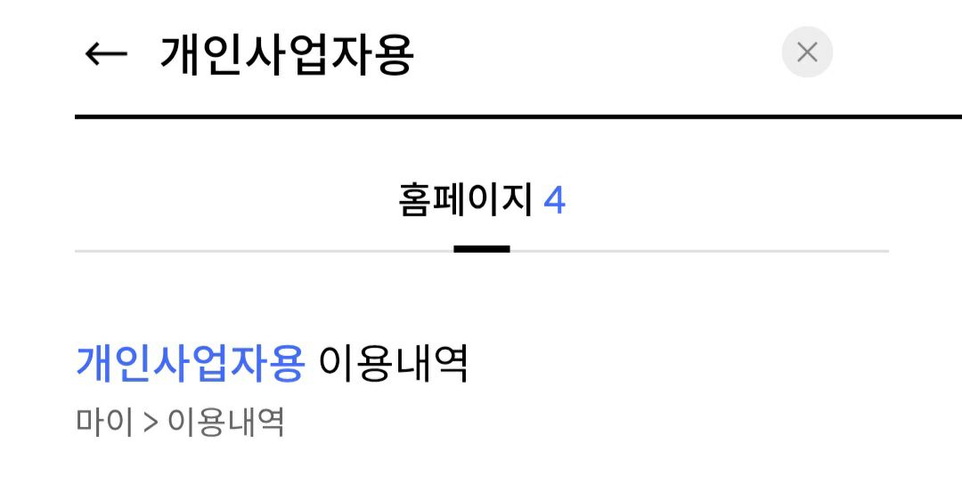 3. 하단으로 내려가면 개인사업자용 이용내역 메뉴 클릭 / 또는 마이 > 이용내역에서 확인 가능합니다