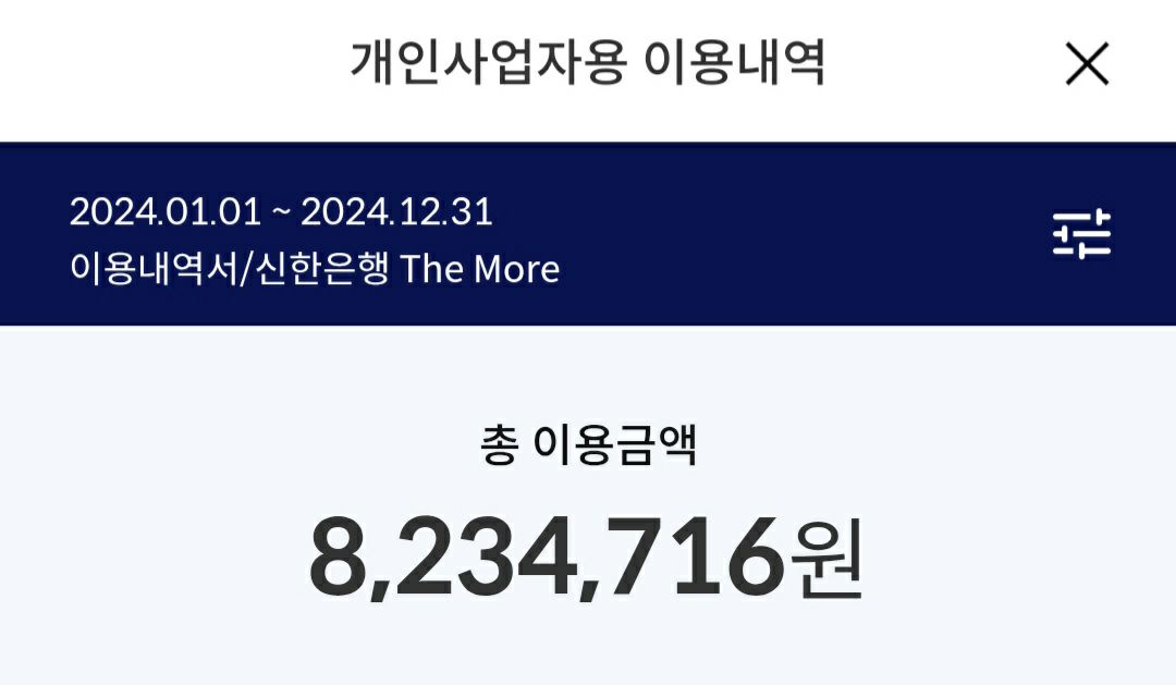 823만 원으로 24년 마무리 지었습니다. 실적 제외되는 것도 간혹 있을 수 있어서 미리 더모아카드 실적 체크하면 좋아요. 실적 확인하려면 3개월 또는 6개월만 나온다고 해서 1년 연간 실적 확인하는 방법 알려드리겠습니다.