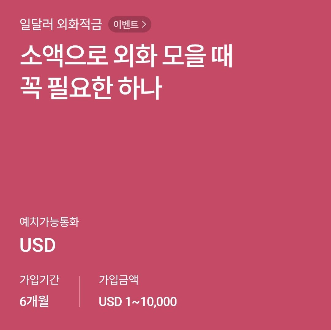 일달러 외화적금은 가입기간 6개월입니다. 가입할 때 최소 1달러로 가입하고 자동이체 해지하면 됩니다. 이벤트2까지 할 경우 이벤트 기간까지 유지하고 그렇지 않으면 오늘 매수한 달러보다 오르면 그때 매도하려고요.