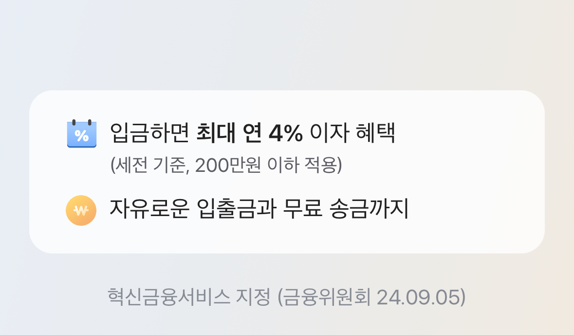 입출금통장인데 세전 기준, 200만 원 한도 안에서 최대 연 4% 파킹통장으로 사용할 수 있습니다.