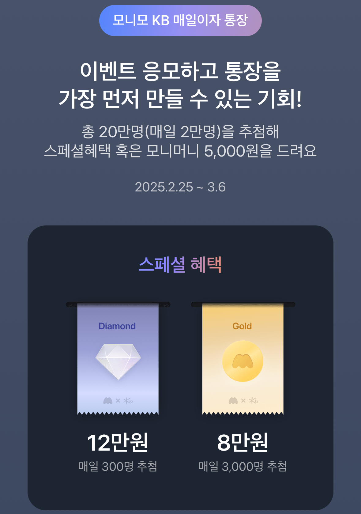 - 통장 사전 개설 기간 및 혜택 제공일정은 통장 출시 전 모니모를 통해 안내 예정