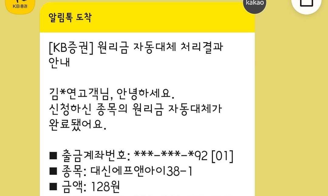 채권 이자 들어왔다는 것 카톡으로 받았어요.