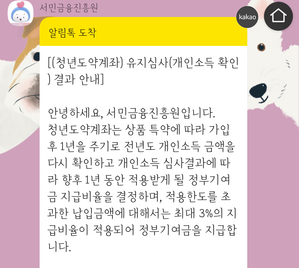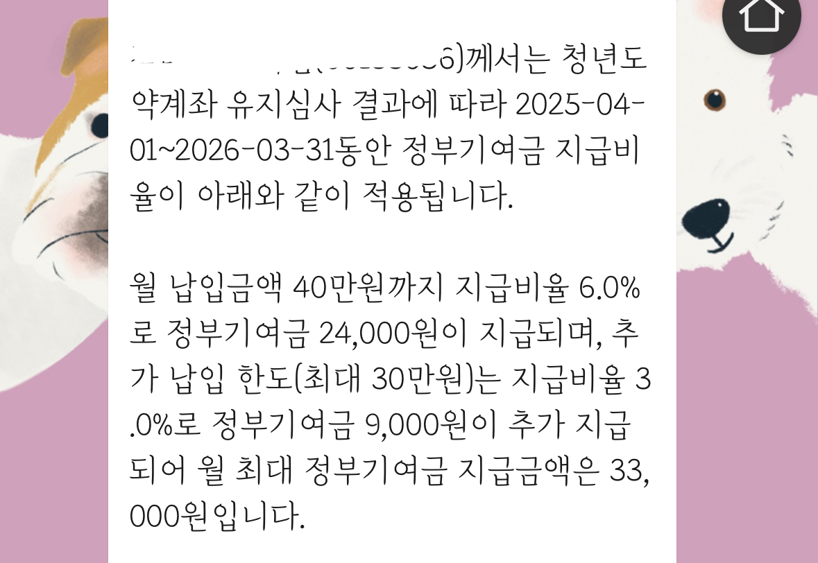 가입한 월에 맞춰서 1년에 한 번씩 전년도 개인소득 금액을 다시 확인하고 개인소득 심사결과에 따라 앞으로 1년 동안 적용받을 수 있는 정부기여금 지급비율이 나옵니다.