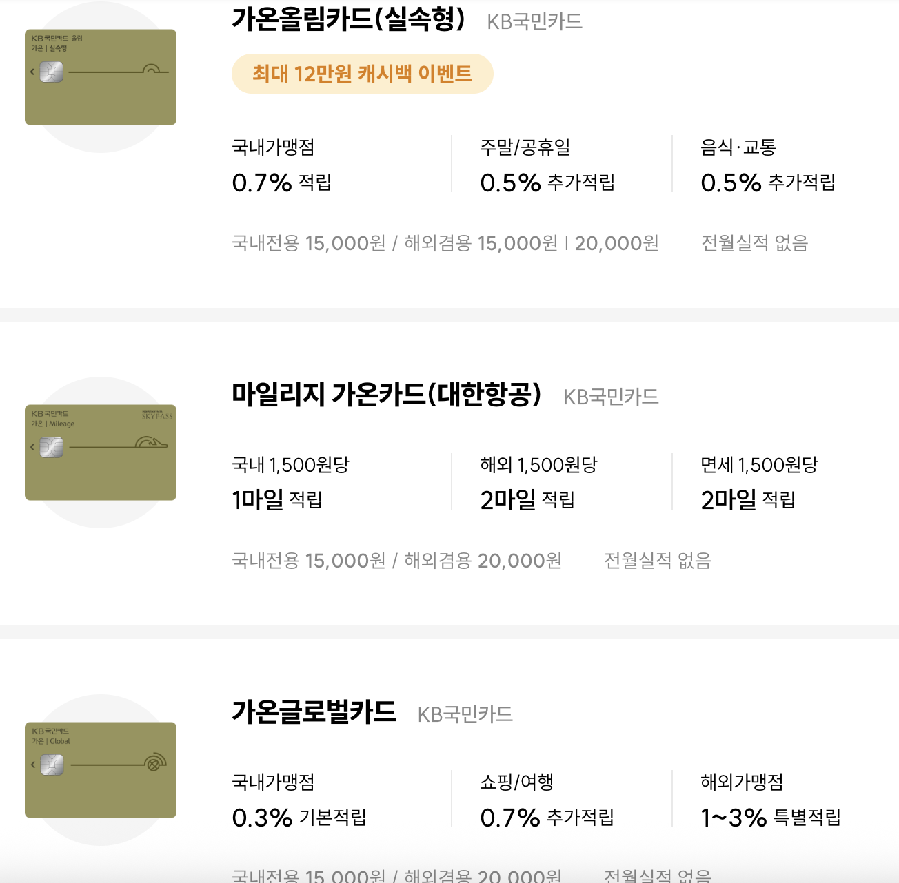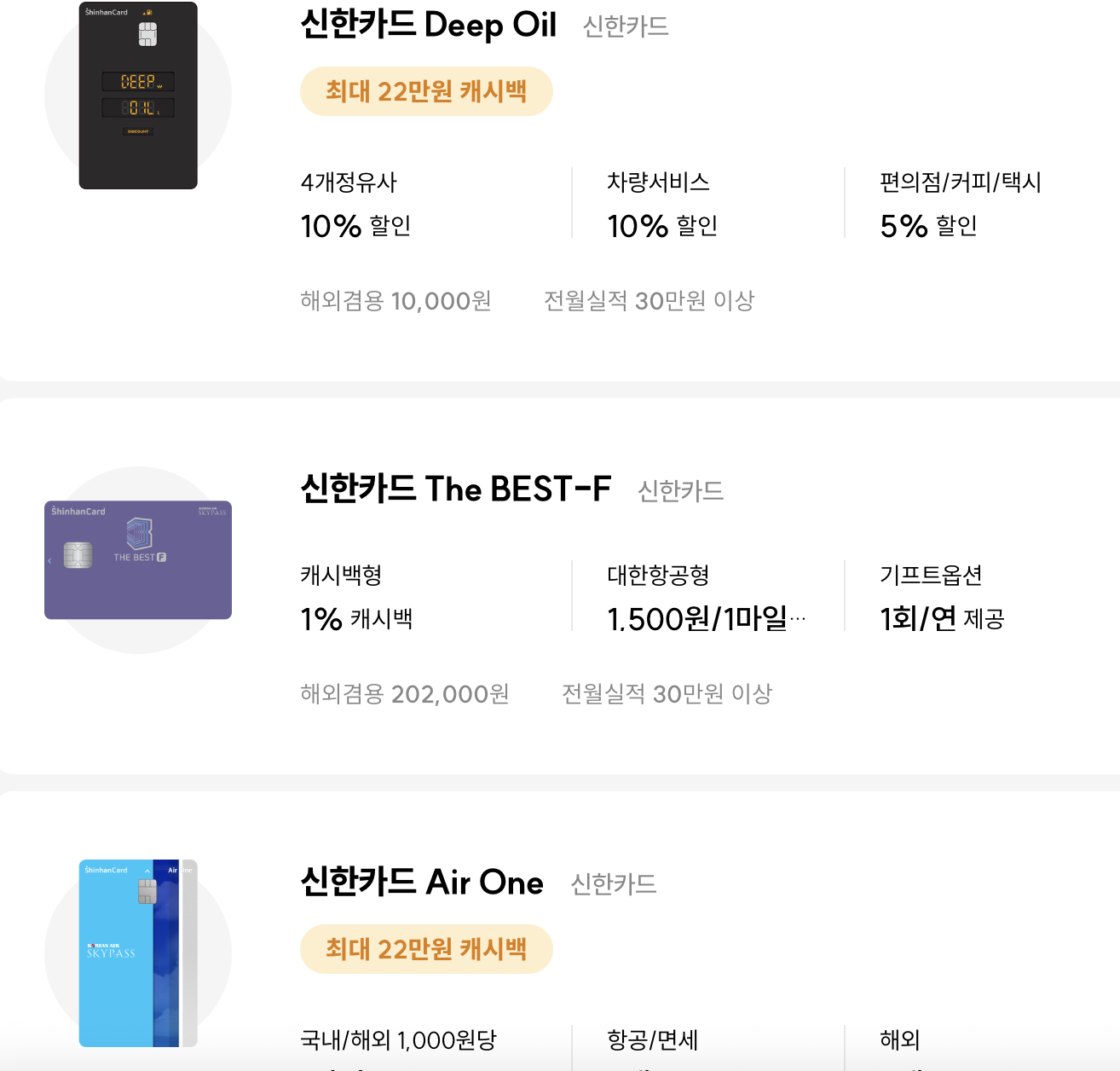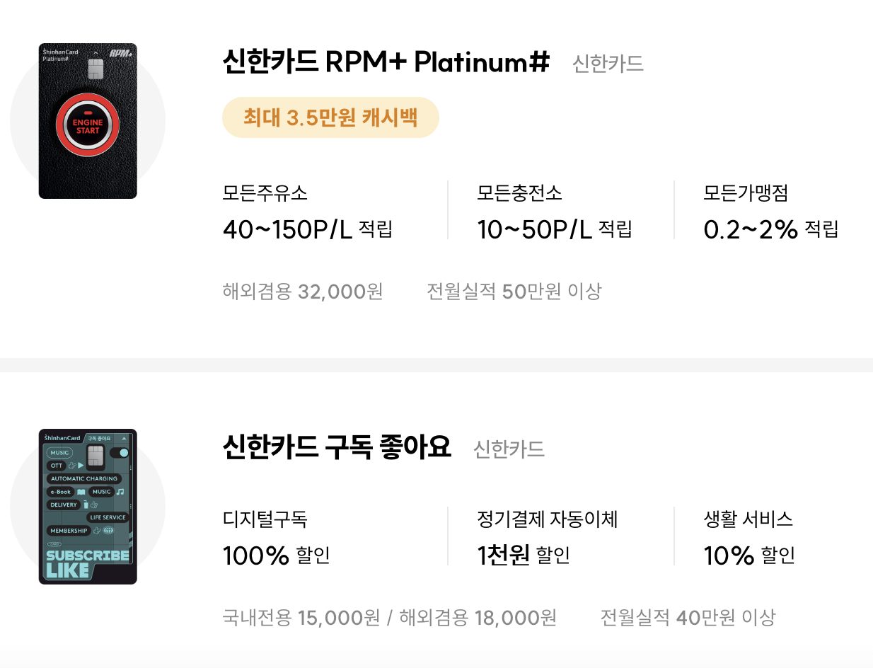 추가로 포인트, 마일리지 적립 가능한 카드도 있습니다.
